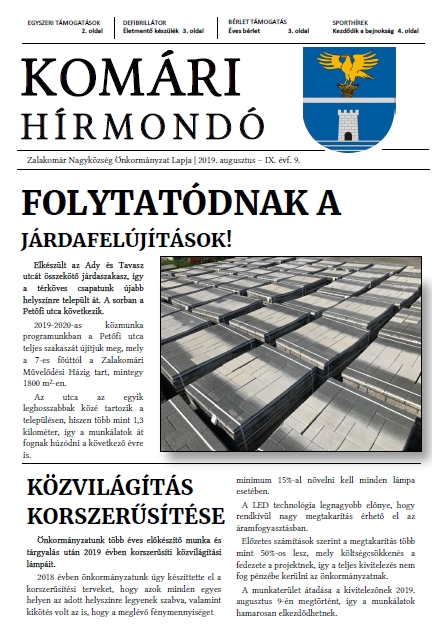 Beküldő: admin | 2019. 08. 10., szo – 07:18 Elkészült és feltöltésre került a Komári Hírmondó 2019 augusztusi száma, mely itt érhető el: Letöltés pdf